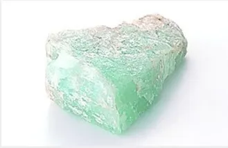 ベリル原鉱石(上)と、工場内に再現した地球内部のマグマと同じ状態のるつぼ