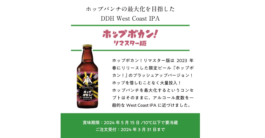 数量限定ビール『ホップボカン!リマスター版』を2023年11月28日よりオンラインショップにて販売開始しました。