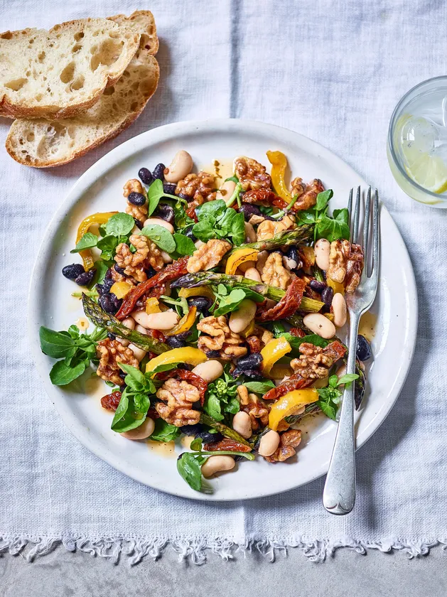 くるみ、ミックスビーンズ、クレソンのサラダ