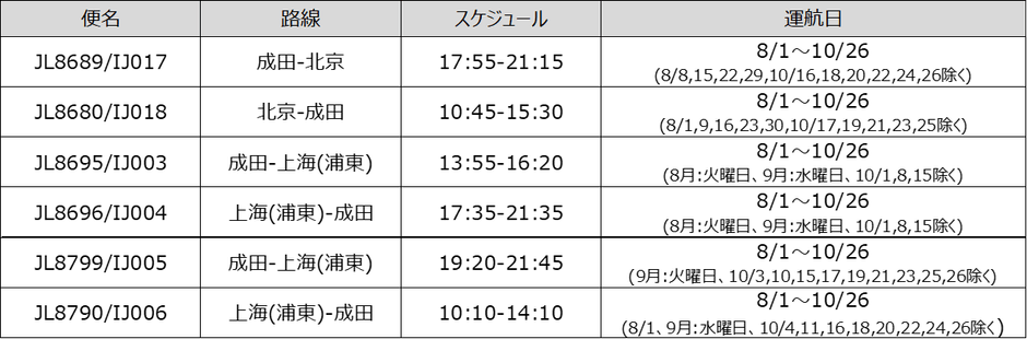 スプリング・ジャパンは、日本品質のサービスを提供する唯一の中国特化型LCCとして、成田を拠点に中国各地へ路線を展開しており、現在成田=上海(浦東)、ハルビン、天津、寧波線を毎日運航しています。このたびさらなる路線拡大を進めるため、成田=北京線、上海(浦東)線にてJALとのコードシェアを実施します。