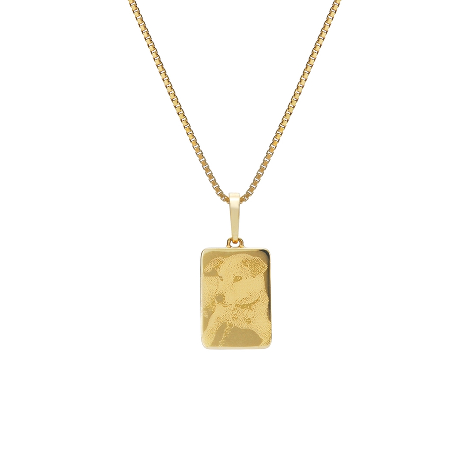 家族の一員として19年間ともに過ごした愛犬“コロスケ”の写真を転写したネックレス。