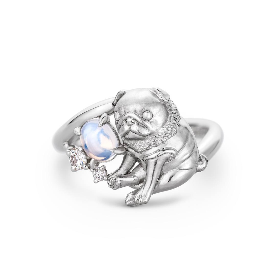体のフォルムや、丸い瞳、頭や耳の形など細部まで表現。指輪の内側にはご遺骨を納めました。