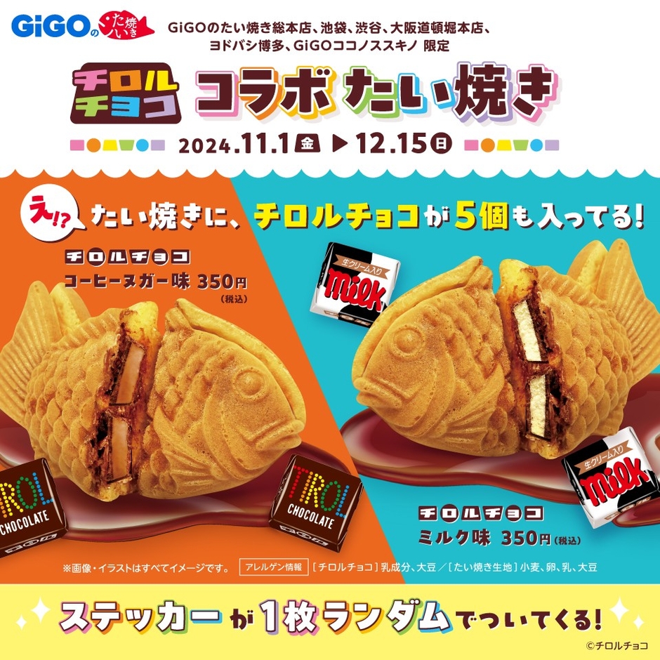 株式会社GENDA GiGO Entertainment(本社:東京都港区 代表取締役社長:二宮 一浩 以下、当社)は、GiGOのたい焼き店舗にて、『チロルチョコ』とのコラボレーションたい焼きを発売いたします。