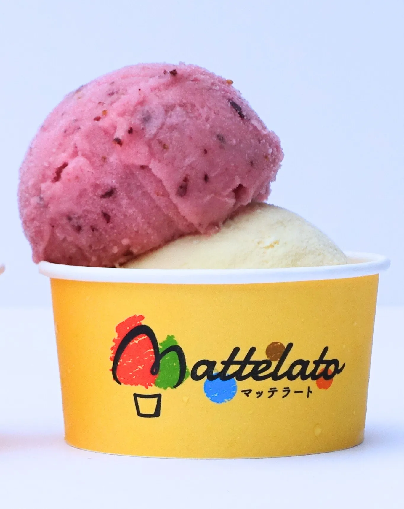 実演 新潟・佐渡島<マッテラート>ジェラート 各種シングル 401円、ダブル501円 ※画像はダブル