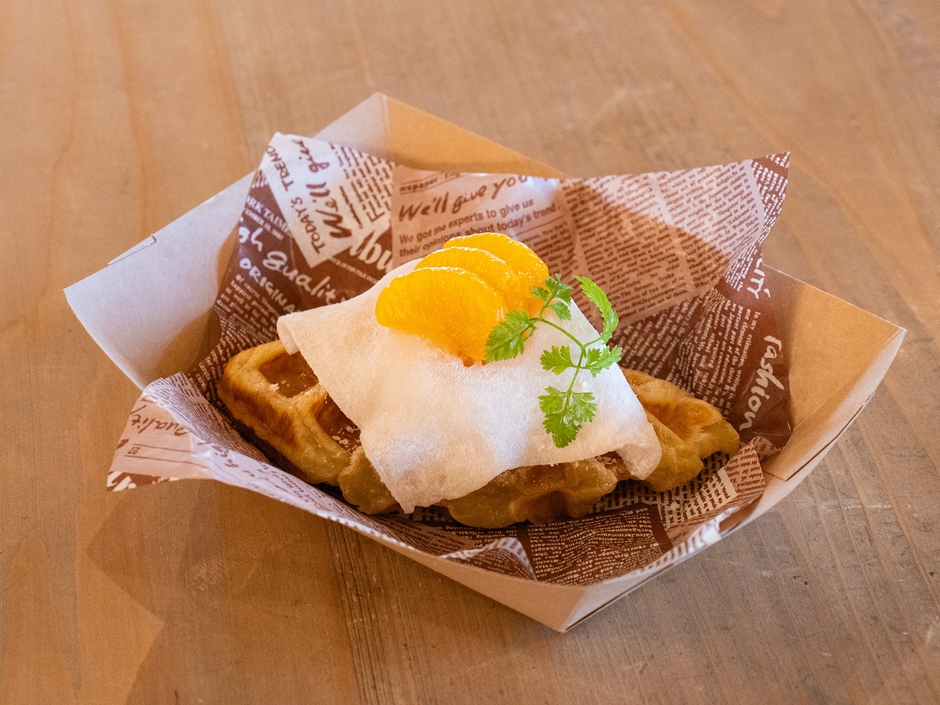 カリッと焼き上げたクロッフルに和のテイストをプラス。独特の食感と風味が楽しめます。