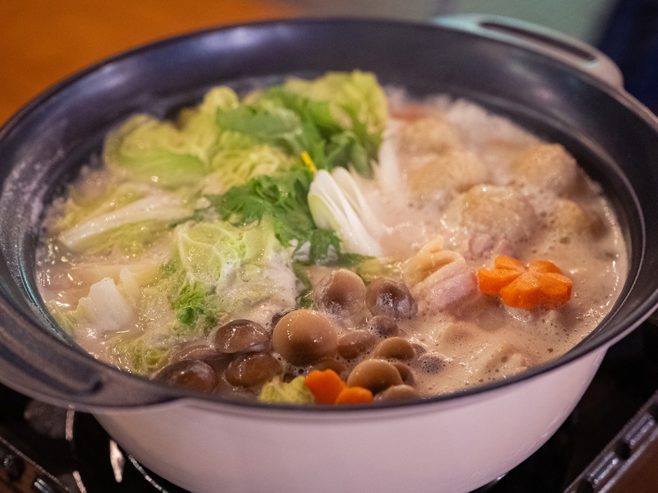 豆乳のまろやかな風味と鶏の旨味が絶妙に絡み合う、クリーミーでリッチな味わい。濃厚なスープが体の内側から温めてくれます。