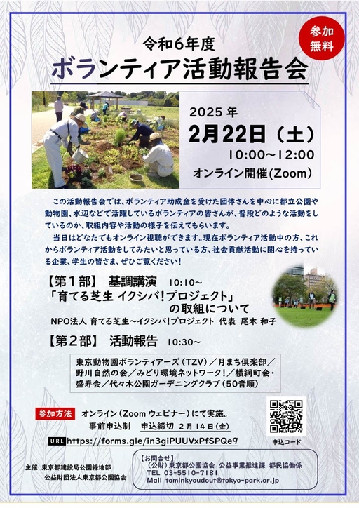 【オンライン参加者募集中】都立公園や水辺等で活躍するボランティア団体による発表「令和6年度ボランティア活動報告会」を2/22(土)に実施します