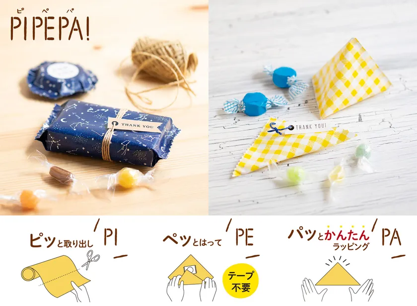 糊やテープ類が不要!不思議なラッピングペーパー『PIPEPA!』 全12柄を10月中旬に発売