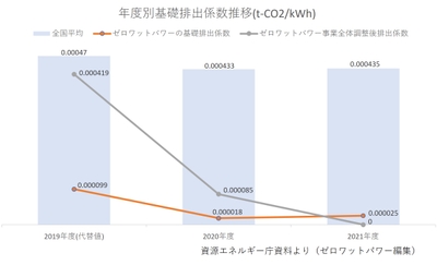 ゼロワットパワー 電気事業者別の二酸化炭素基礎排出係数0.000025(t-CO2/kWh)