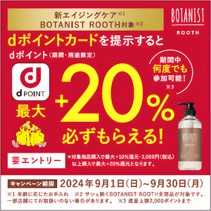 「dポイントが最大+20%還元!マツキヨ・ココカラ×BOTANIST ROOTH」キャンペーンを開催