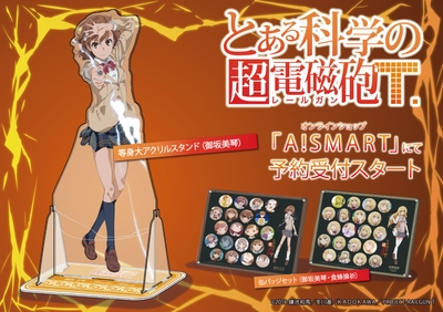 御坂美琴とのおうち時間の夢が叶う!? 『とある科学の超電磁砲T』御坂美琴の等身大アクリルスタンド 「A!SMART(アスマート)」にて予約受注販売スタート! 名&迷シーンを集めた缶バッジセットも登場!