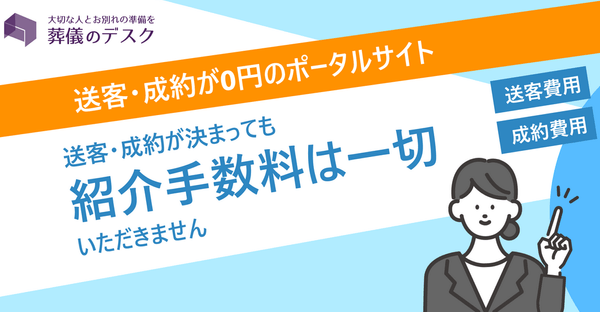 葬儀社紹介サイトは多数ありますが、弊社はどのプランを選んでも「紹介手数料”無料”」です。