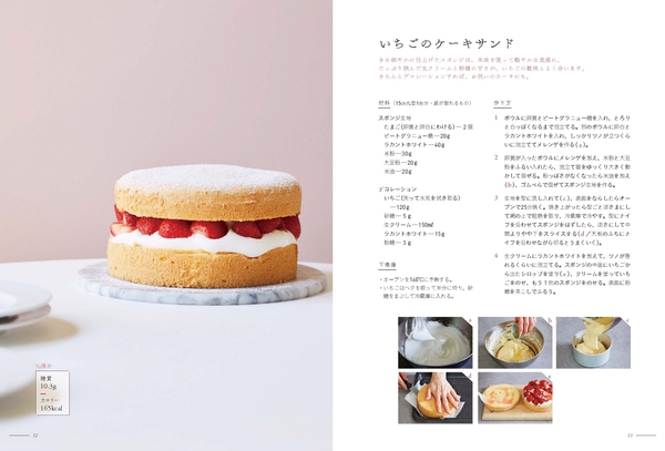 クッキーやマフィン、シュークリーム、ベイクドチーズケーキなどの焼き菓子も、すべて5ステップ以内で簡単に作れるものばかり。また、フルーツを使ったゼリーなど、焼かないお菓子レシピも充実しています。