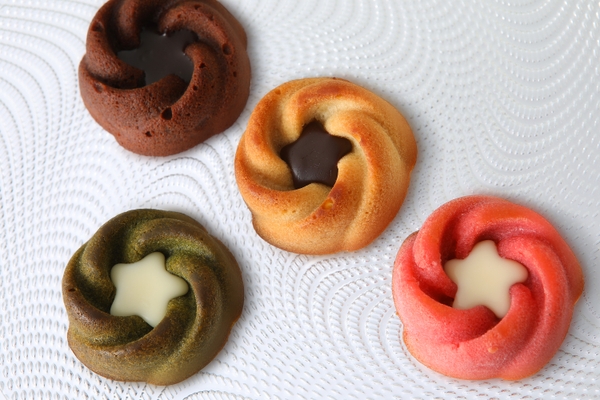 薔薇を象ったエレガントなフィナンナシェの真ん中には、洛甘舎オリジナルの「和ショコラ」をアクセントとしてトッピングしています。絶妙な組合せの妙をお楽しみください。