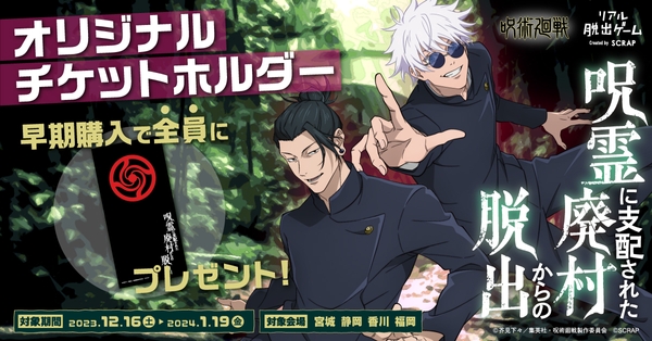 株式会社SCRAP(本社:東京都渋谷区、代表:加藤隆生)は、TVアニメ『呪術廻戦』第2期「懐玉・玉折」とコラボレーションしたリアル脱出ゲーム『呪霊に支配された廃村からの脱出』を全国4都市にて追加開催することを発表いたします。