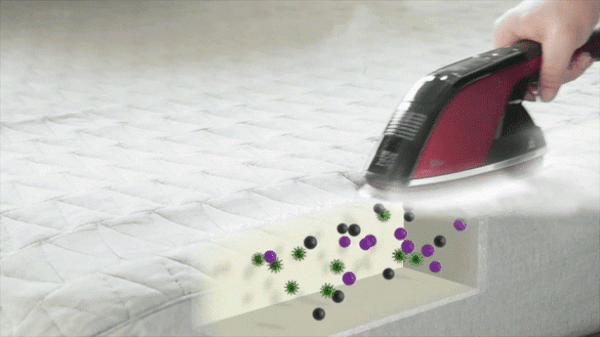 1メートル以上先まで届く強力スチームで洋服についたホコリや塵そしてウイルスまで除去します。