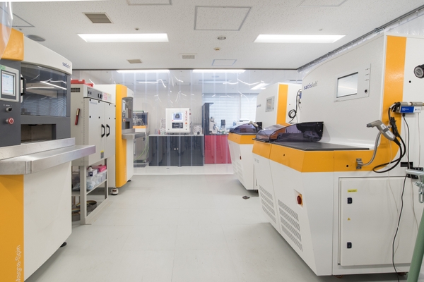 「24G」の翌日納品は、こういった海外での大量生産モデルとはまったく違う発想で構築されたレンズ加工技術により実現されます。レンズ加工を行うラボラトリーは学校の教室程度の広さでとてもコンパクト。一人ひとりのレンズの処方に合わせ、レンズを加工する各工程でも、加工時間を短縮する最新技術が導入されています。