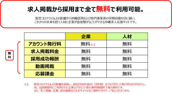 特に沖縄県において従来の求人誌・求人サイト等への広告掲載料金型のモデルは、企業側への採用広告コスト負担が重くのしかかることになり、求職者にとっても求人媒体が溢れている現状においては、求める情報と出会うためのITリテラシーなどの課題もでてくることが想定されます。