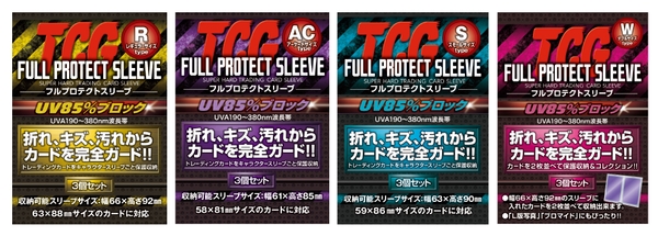 トレーディングカード収納専用のフルプロテクトスリーブは全4種類。