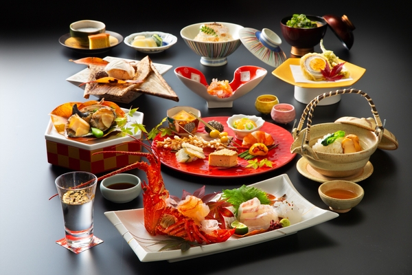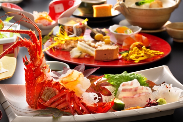 天然鳴門鯛や伊勢海老のお造里、小フグの唐揚げ、鮑など、おめでたい食材の味わいを余すところなく引き出しました。お祝いごとに最適な垂涎の会席料理をご賞味ください。