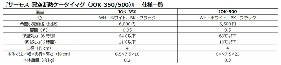 ◆サーモス 真空断熱ケータイマグ(JOK-350/500)製品特長
