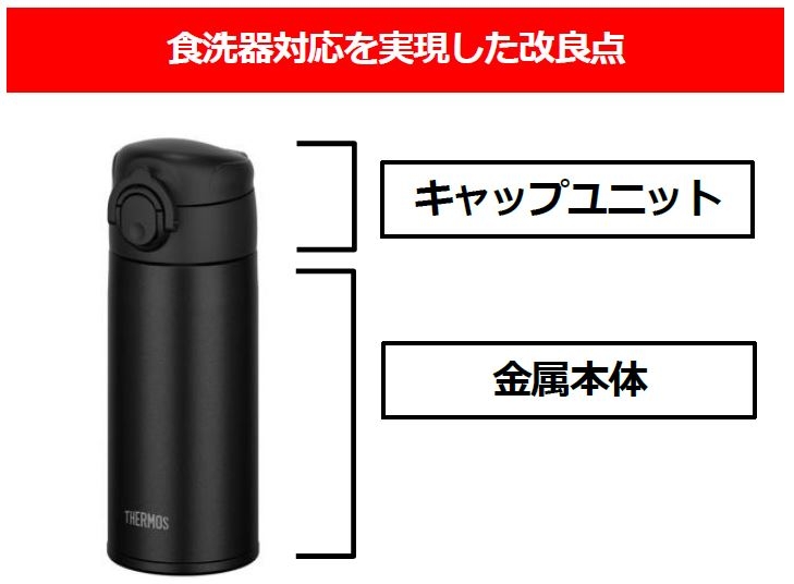 この度発売する『サーモス 真空断熱ケータイマグ(JOK-350/500)』は、サーモス初となる食洗機対応のケータイマグです。多くの方からの“毎日使う水筒を、食洗機でまるごとキレイに洗いたい”という要望にお応えする新製品です。