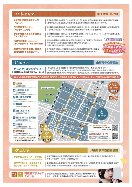芸妓文化をはじめとする多様な伝統文化が息づく山形市。文化が作り出す花やかな非日常「ハレ」と、文化が受け継がれていく日常「ケ」を、山形市の街なかを行き来しながら感じていただけるイベントです。