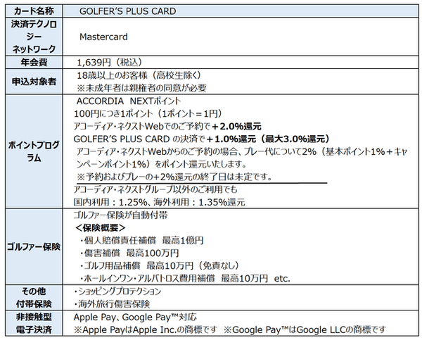 【GOLFER’S PLUS CARD 概要】