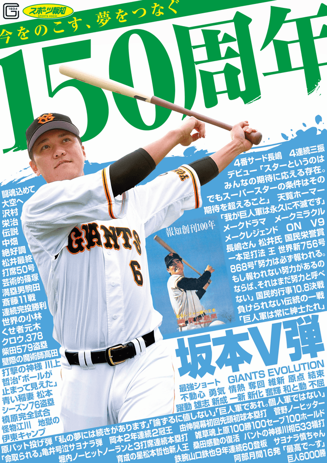 150周年記念ポスターは全国の読売新聞販売店(YC)に掲出されます。3月22日付スポーツ報知に折り込まれている台紙に毎週火曜日掲載の勝敗マークを貼付するプレゼント企画の賞品にもなっています。奮ってご応募ください。