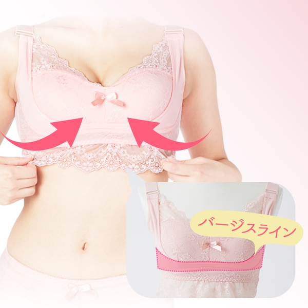 就寝中の仰向き時、横向き時もワキに流れがちなバストをしっかりと包み込み、バストの黄金比と言われる美しい丸みのあるバストに導きます。
