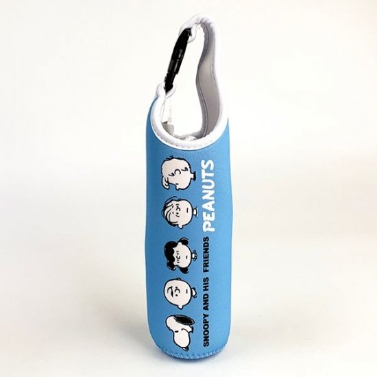 ブルーのボトルケースには、スヌーピーを始めチャーリーブラウンたちフレンズの顔が並んだデザインが描かれています。
