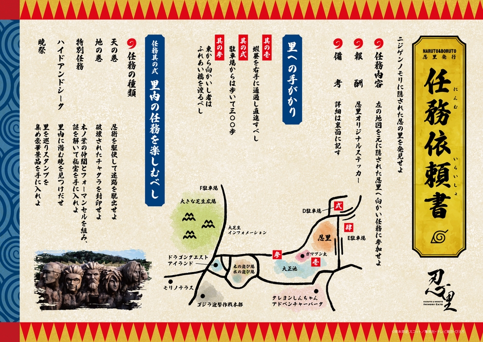 淡路島 ニジゲンノモリ「NARUTO&BORUTO 忍里」 「任務依頼書」園内地図 9 月 17 日より期間限定で無料配布