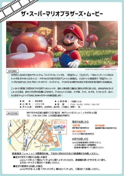 今回は「ザ・スーパーマリオブラザーズ・ムービー」を日本語字幕付き吹替版で上映いたします。ご家族やご友人も一緒にご鑑賞いただけますので、以下の要項をご参照のうえ、是非ご応募ください。
