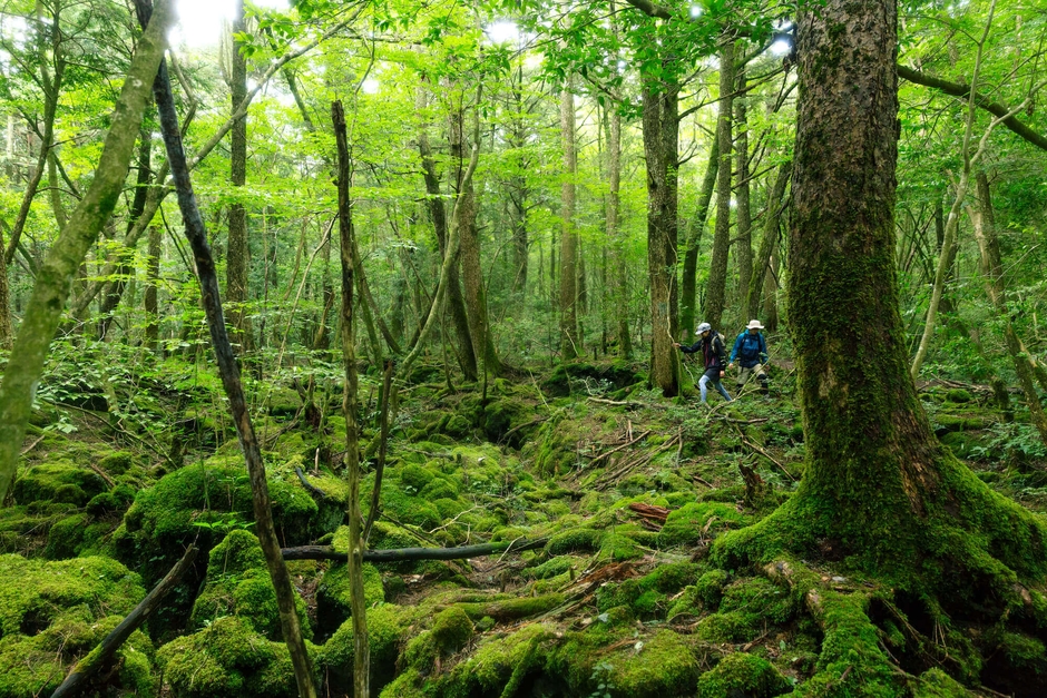 星のや富士から車で15分の場所に広がる「青木ヶ原樹海」。上空から青木ヶ原を眺めると、木々が風になびく様子が、海原でうねる波のように見えることから、「樹海」と呼ばれています。ミステリアスなイメージがある樹海ですが、実際は生命力豊かな自然が広がる、とても美しい場所です。そこで、樹海の奥深い魅力を伝え、発見と感動を得られる特別な体験を提供したいと考え、当プログラムを開発しました。