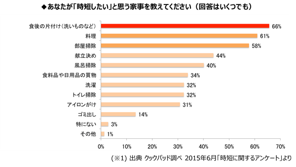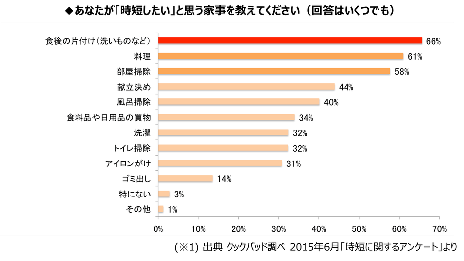クックパッドが時短に関するアンケートを実施したところ、全体の66%が時短したい家事を「食後の片付け(洗いものなど)」(※1)と回答しています。使いやすさは勿論の事、片付けのしやすさも食器選びの重要なポイントとなっています。