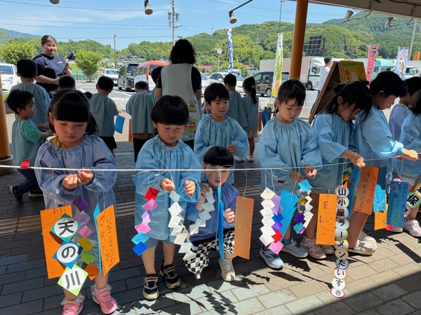 『九州筑豊ラーメン』ブランドのチェーン展開や食材の卸売りをおこなうワイエスフード株式会社(本社:福岡県田川郡香春町鏡山552-8/代表取締役社長 小川 光久 以下、当社)は、地域交流活動の一環として「山小屋 創業店」(福岡・田川郡香春町)にて社会福祉法人勾金福祉会 勾金(まがりかね)保育所(田川郡香春町高野767‐2)の園児23名による七夕の飾りつけなどを行なう七夕イベントを実施しました。