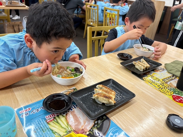 美味しそうに食べる園児の顔がとても印象的で、ラーメンをお替りしたりスープまで飲み干していました!
