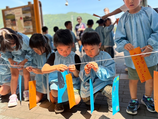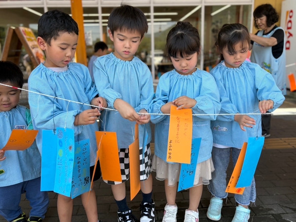 短冊には、園児それぞれの夢や願い事が短冊いっぱいに書かれており、自分のお願い事を言いながら飾っている園児もいました。