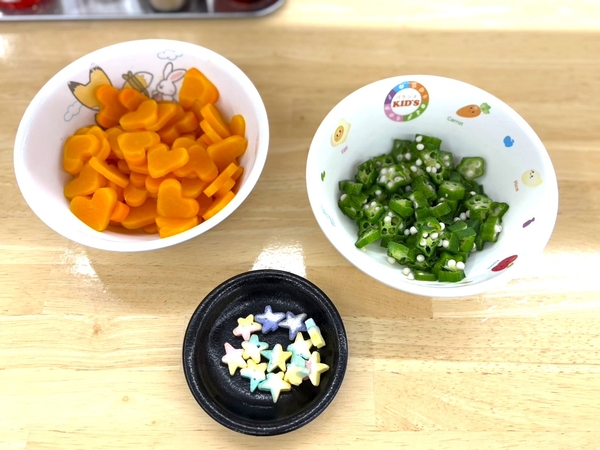 オクラは輪切りにして星型に、ニンジンはハートに模りトッピング!