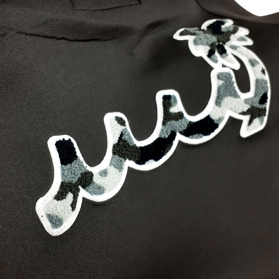 フロントにURBAN SUNのロゴを配置、バックにはカモフラ柄のパームWAVEがブラックに映えるデザイン。