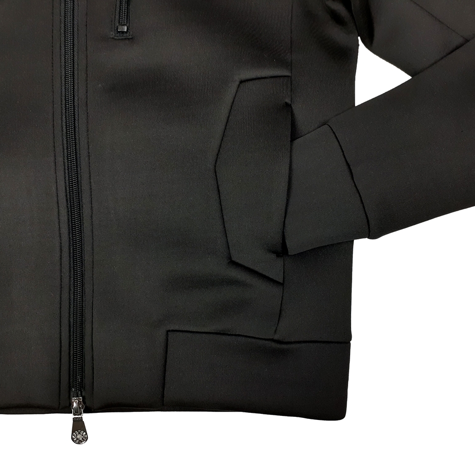 ウエットスーツのような柔軟性を備えたボンディング素材を使用し、海のイメージを残しつつ、カジュアルすぎない大人リッチ感ある普段着スタイルを提案。