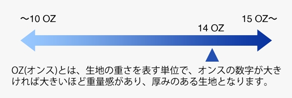 「硬すぎるのはちょっと…だけど本格的なジーンズを試したい」という方には、14OZはぴったりです。厚すぎず薄すぎない、春夏秋冬関係なく、一年中でも使えますので、ちょうどいい。