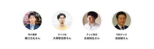 登壇予定者:早川書房 溝口力丸さん、ライツ社 大塚啓志郎さん、テレビ東京 合田知弘さん、TBSテレビ 池田誠さん 他