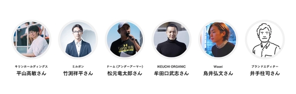 登壇予定者:キリンホールディングス 平山高敏さん、ミルボン 竹渕祥平さん、ドーム(アンダーアーマー) 松元竜太郎さん、IKEUCHI ORGANIC 牟田口武志さん、Wasei代表 鳥井弘文さん、ブランドエディター 井手柱司さん