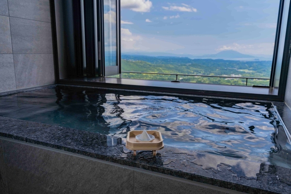 桜島や錦江湾を見渡すことのできる客室露天風呂では、霧島神宮への参拝に備えて「撤下神饌の清め塩」で心身を清めます。用意する塩は、霧島神宮で日々斎行されている祭典でご神前へお供えされた神饌です。神様が嫌う穢れを祓い、神様に思いを届ける準備をします。