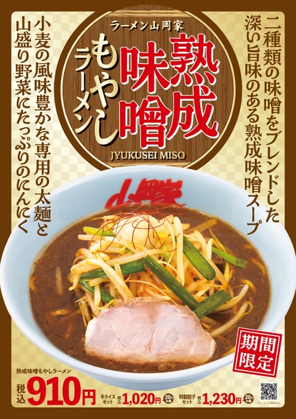 ラーメン山岡家では今年初めての期間限定商品として「熟成味噌もやしラーメン」の販売を開始しました。