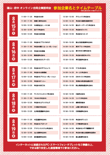 オンライン初開催! 福山市・府中市に就職希望の就活生・転職希望者と 企業50社をつなぐ合同企業説明会開催