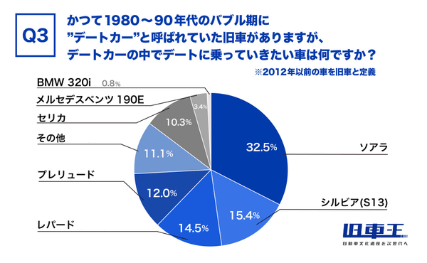 Q3.かつて1980〜90年代のバブル期に”デートカー”と呼ばれていた旧車がありますが、デートカーの中でデートに乗って行きたい車は何ですか?