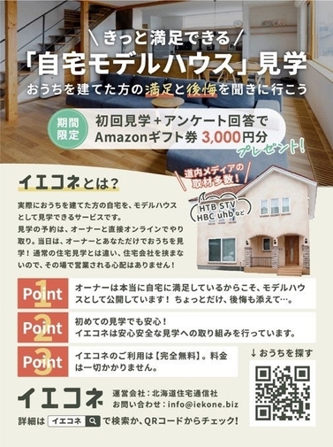 “自宅モデルハウス見学サービス”「イエコネ」が、住宅を購入する方向けに、初回見学+アンケート回答でAmazonギフト券を付与するキャンペーンを延長します。