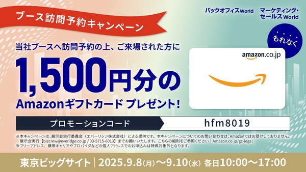 ブース予約でAmazonギフトカード1,500円分進呈!